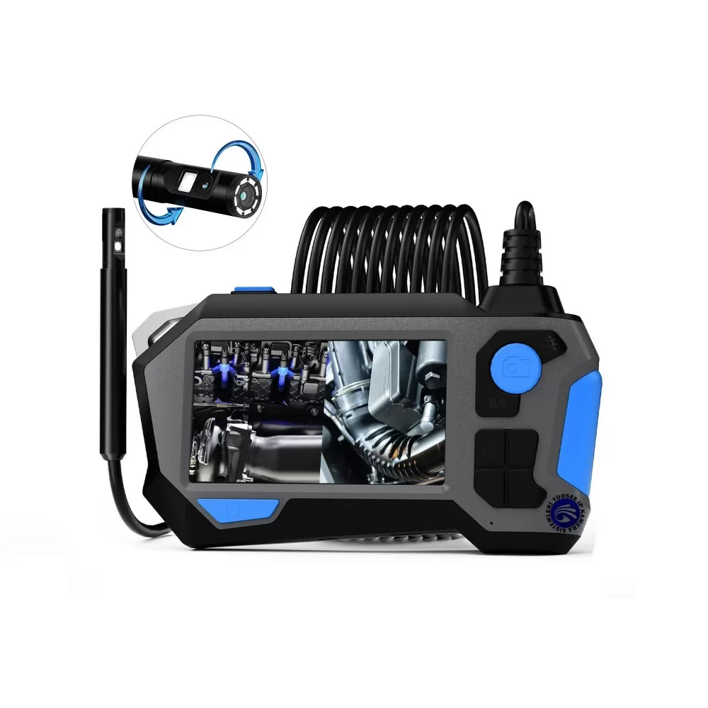 4.5 inç Monitörlü 360° döndürülebilir çift kameralı HD görüntü 10 metre sert tel kablolu yılan kamera. Özellikler: * Döndürülebilir ön ve yan kamera * Sert Tel kablo